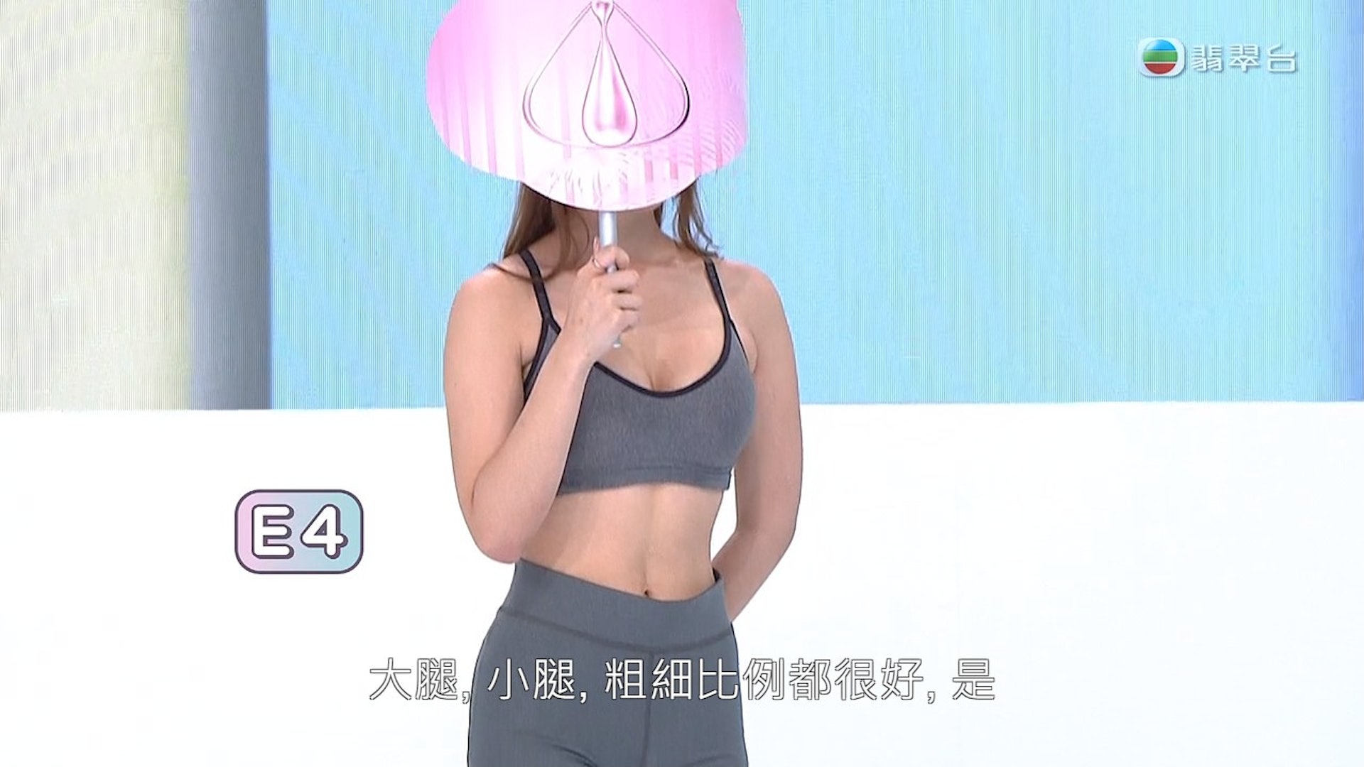 到了下一組出場,有評判讚賞E4(Michelle / 潘明璇)的身材比例,陳嘉容表示喜歡E3和E4的臉形,她說:「比例好好,好結實,形態好好。」仔細一看,原來Michelle還有少少腹肌。Michelle表示自己十分喜歡食pizza,所以為了參選狂做gym修身