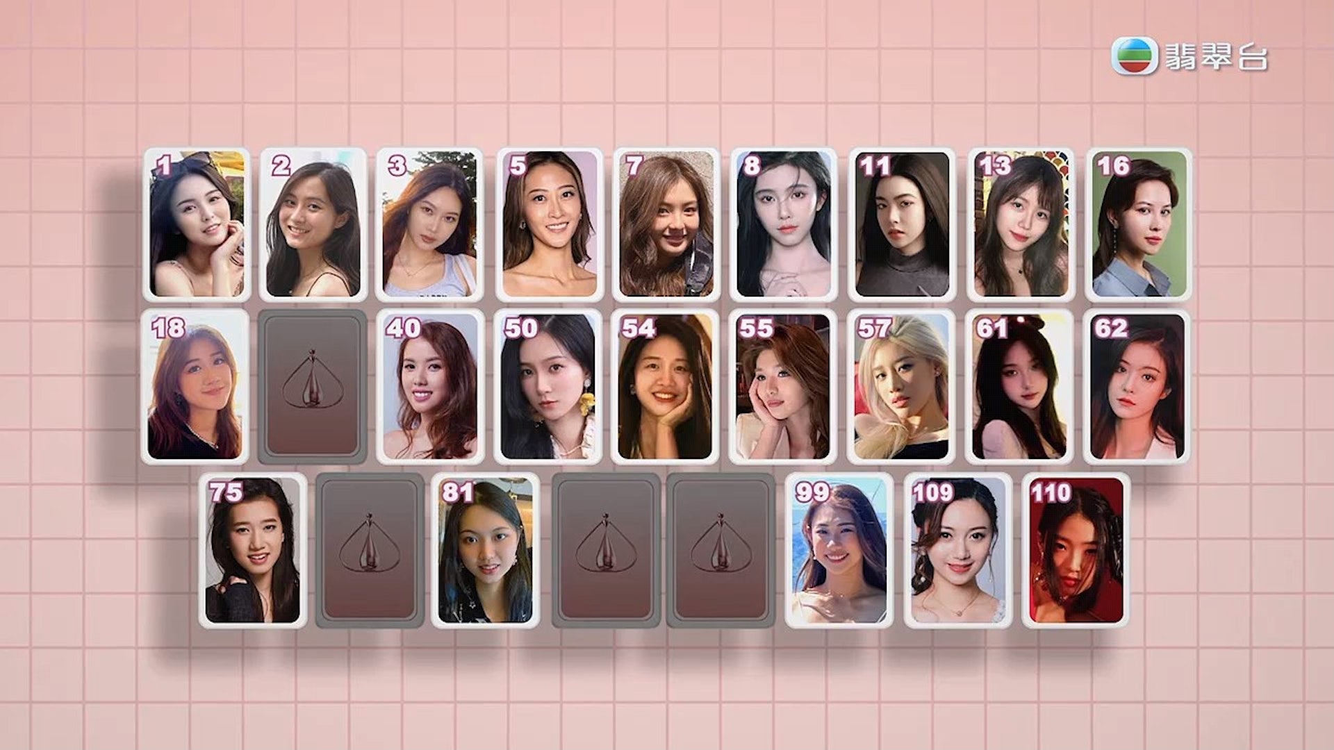 入圍的22位佳麗。 (《2023香港小姐競選》終極面試 / 截圖)